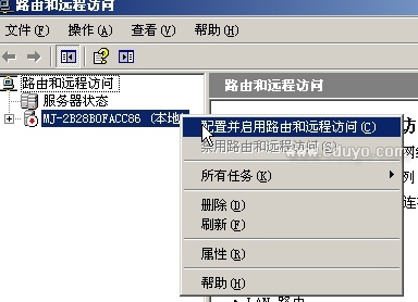 RRAS是windows 2003的默认安装组件,其初始状态处于停止状态。所以在配置RAS之前,必须将其激活。