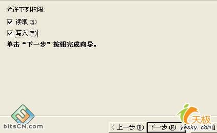 接着我们将看到一个标题为“FTP用户隔离”的设置界面,选中该界面中的“隔离用户”项目,之后进入到FTP站点主目录向导设置窗口,单击其中的“浏览”按钮,从随后弹出的文件夹选择对话框中将前面已经创建好的“aaa”文件夹选中并导入进来,再单击“确定”按钮;当向导窗口要求我们设置“FTP站点访问权限”时,我们必须将“写入”项目选中(如图3所示),最后单击一下“完成”按钮,结束FTP站点的架设操作。