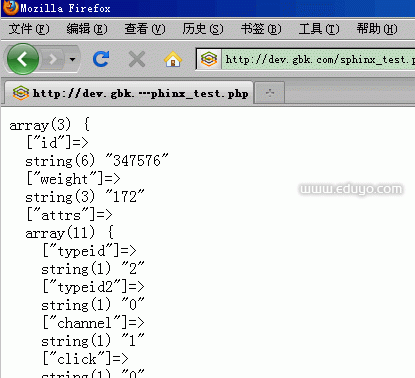 执行sphinx_test.php,可以看到已经能够正常通信,并且返回了内容.