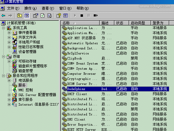 这样就在系统中成功创建了一个DedeSphinx服务,无需再打开窗口(如图5).