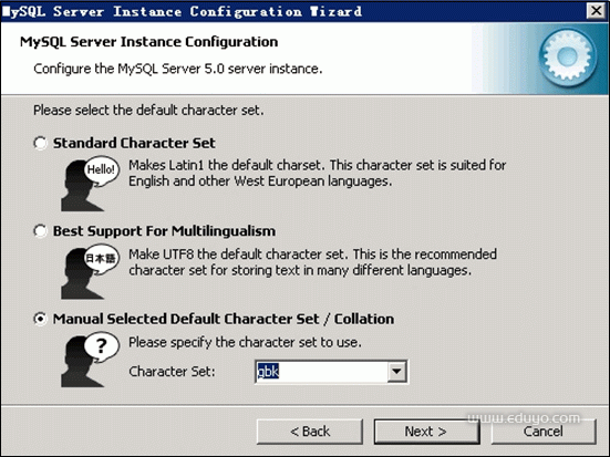 设定 MySQL 默认字符集:以用户站点语言为准。如图 10 所示: