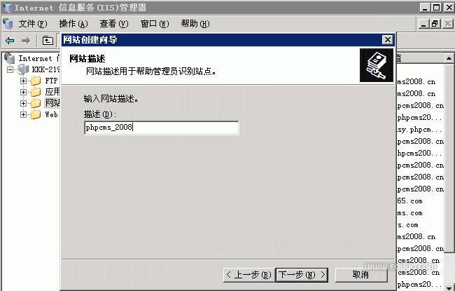 (2) 输入网站名称,改名称仅为 IIS 中的标识,可任意输入。如图 16 所示: