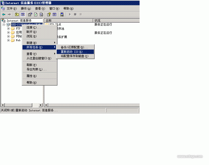 (6) 重启 IIS 服务,如图 26 、27 所示: