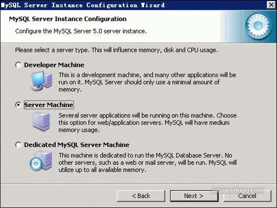 选择 MySQL 运行模式:Server Machine 如图 6 所示: