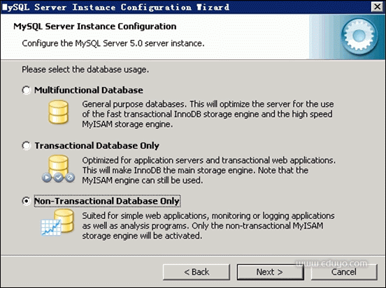 选择 MySQL 数据库默认存储方式:Non-Trans Only ( MYISAM) 如图 7 所示: