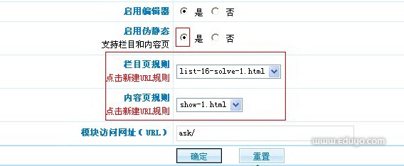 规则名称:htmlshow、show分别为内容页伪静态规则名称和动态地址名称