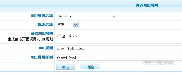 2、修改已有规则需要到:系统设置--相关设置--URL规则管理--管理URL规则