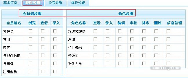 栏目权限设置,有关栏目管理权限、用户浏览权限