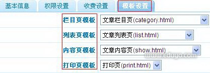模板设置,选择栏目模板,系统默认自带了模型的模板,有关模板管理、制作查看“模板管理”
