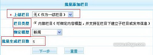 一次增加多个相同模型下的栏目