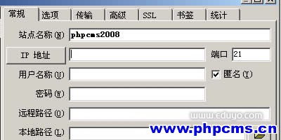 这里我们需要填入正确的IP地址、用户名称、密码,本地路径:请选择刚才用WINRAR解压PHPCMS的文件夹的phpcms目录。 然后点击下面的“应用”即可。