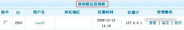 位置:会员管理----会员管理----审核会员
