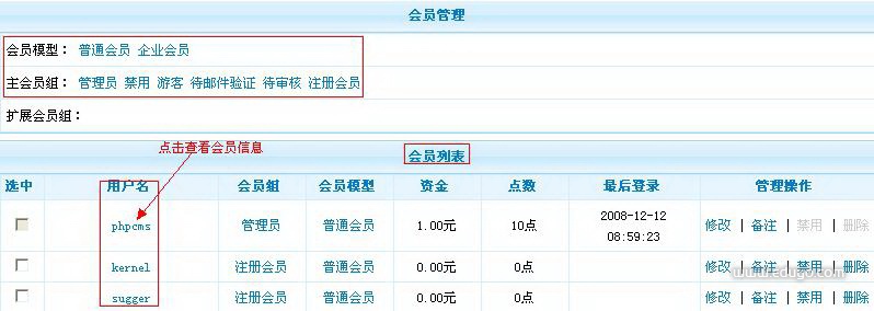 位置:会员管理----会员管理----管理会员
