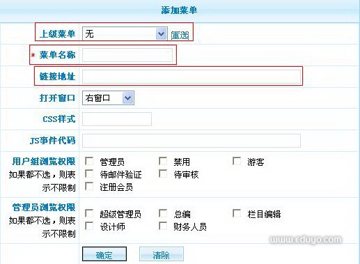 位置:系统设置----相关设置----菜单管理----添加菜单