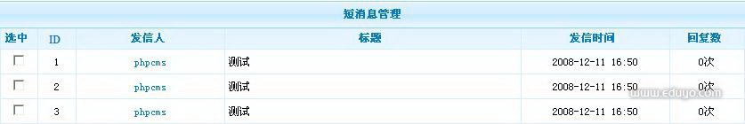 位置:模块管理----短消息----短消息管理
