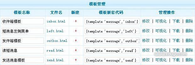 位置:模板风格----短消息----管理模板