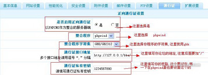 5.这里填写你整合的密匙,这个要记住,后面phpwind的设置里也要用到