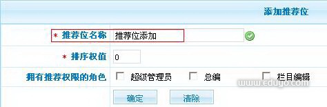 3、进入“添加推荐位”,可以添加推荐位,同时可以通过:(位置:系统设置----相关设置----推荐位管理----添加推荐位)来添加推荐位。