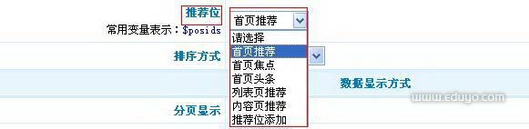 推荐位是指管理员可以把信息推送至网页上指定的位置,也可以随时把信息从指定的位置撤下来,从而达到信息精准投放的目的: