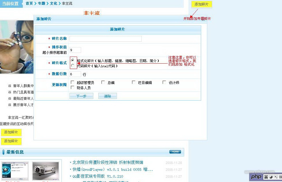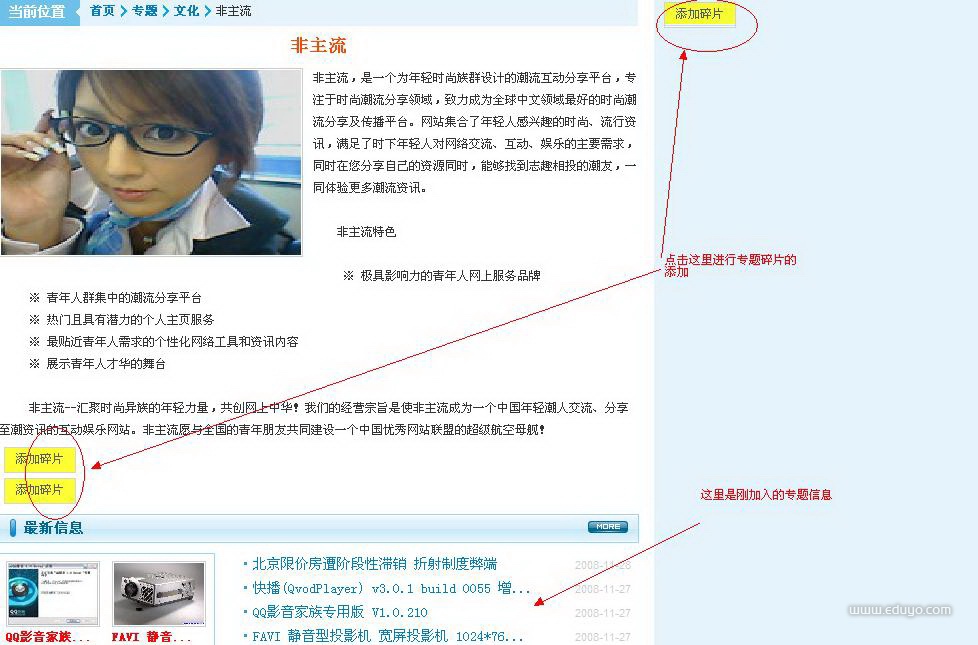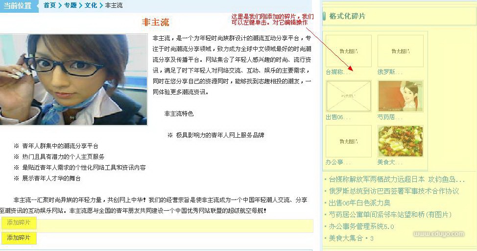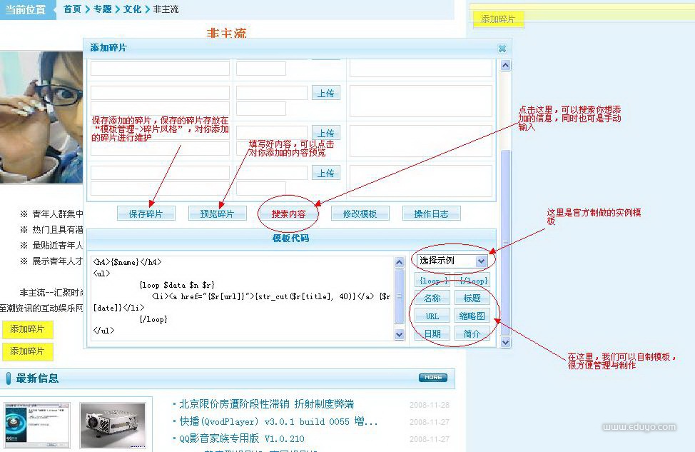 碎片功能支持完全手动更新,并且可以搜索内容,可恢复数据至任何历史版本,常用于专题制作和首页频繁更新的内容。