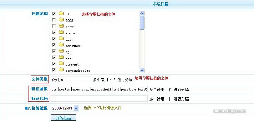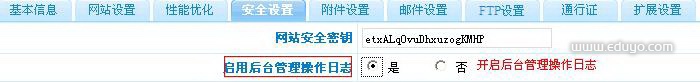 文件管理器设置开关、模板开关、执行SQL开关、木马扫描镜像文件创建和检验、后台操作日志