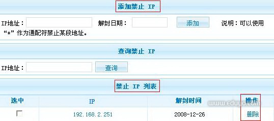 禁止IP会对资源有一定的占用,同时使用次功能能有效的保证网站的安全性。可以对有恶意性的ip进行禁止访问