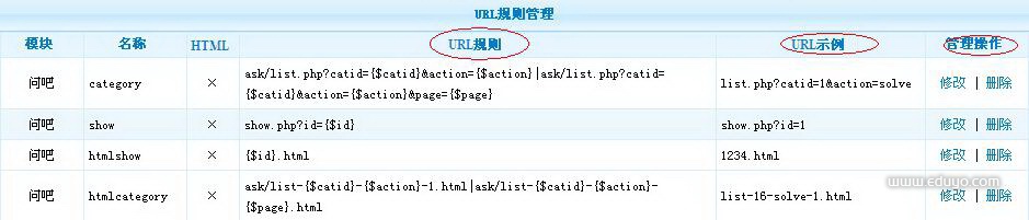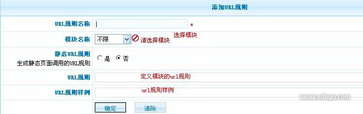 这里就是URL实例,写一个能表达你url的实例。但是不能不写,否者你在模型设置里面,看不到你定义的规则名称,这个示例就是url规则名称。