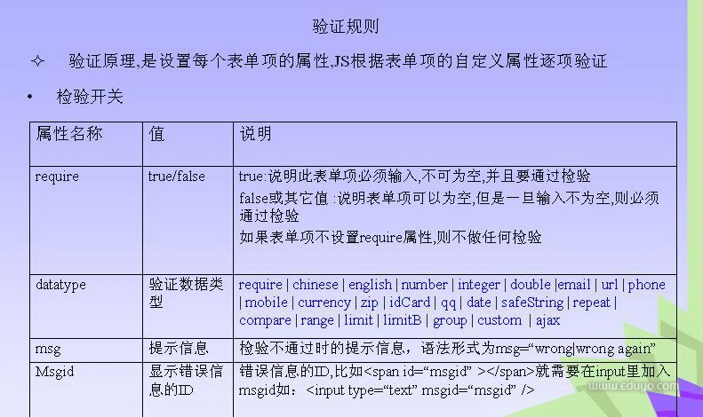 首先:我们的datatype必须指定”custom“,同时regexp 是我要写的验证规则。