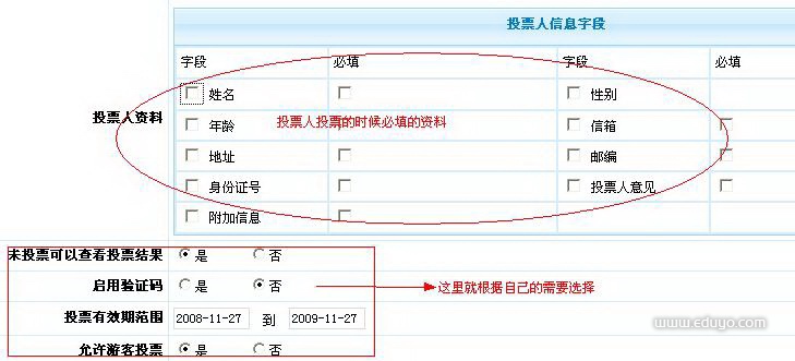 2.投票模板以及是否启用验证码这个根据自己的需要选择