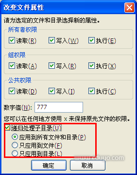 使用 FTP 软件登录您的服务器,将服务器上以下目录、以及该目录下面的所有文件的属性设置为 777,Win 主机请设置 internet 来宾帐户可读写属性。