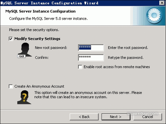 修改设定 root 用户密码,注意:不要启动远程连接模式! 如图 12 所示: