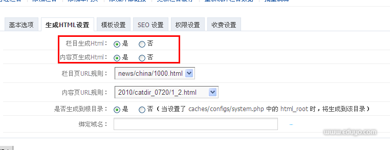 默认添加的栏目为静态浏览,是不生成静态的需要在栏目中配置是否生成静态