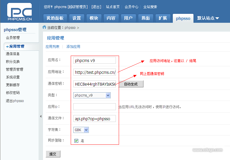 一、检查服务器是否填写了DNS,即服务器是否能上网访问www.phpcms.cn。有部分用户是本机通信失败,检查C:\WINDOWS\system32\drivers\etc\hosts文件,如果用的是localhost域名访问,本机是否绑定了127.0.0.1 localhost 二、检查phpsso的访问地址是否正确,然后查看设置->phpsso设置中的应用id、接口地址、加密密钥、版本号和phpsso->应用管理->编辑应用中的对应选项是否一致。