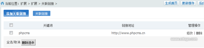 1). 修改: 您可以修改任意关联连接,界面如添加一样,点击前往