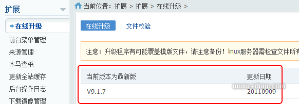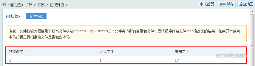 本节提供了在线升级网站程序以及网站核心文件效验功能