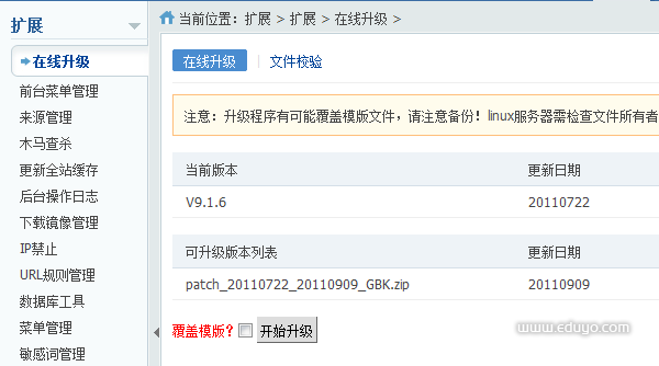 如果开发过那么请放弃使用本功能,手工进行升级,如果使用的费默认模版请勿勾选覆盖模版 切记!切记!