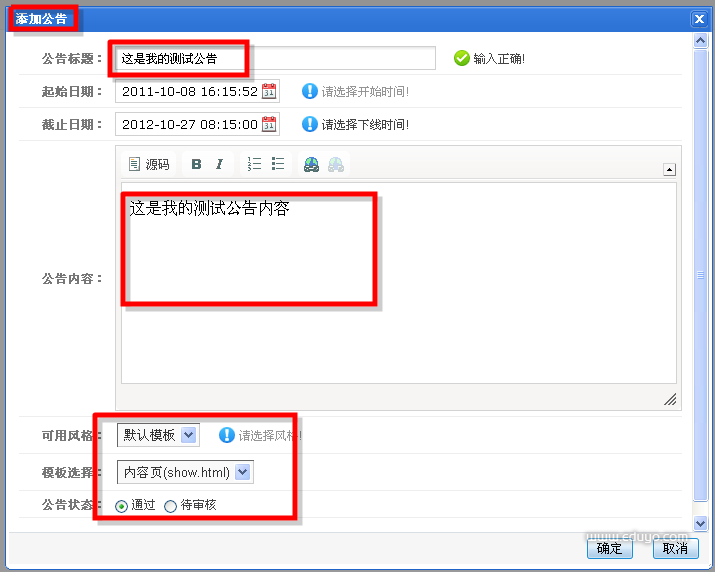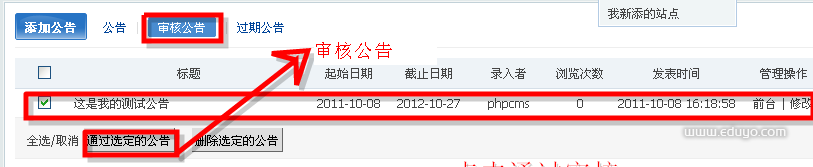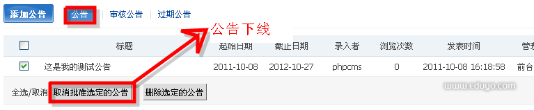 用于管理添加公告 添加新公告 审核公告 审核公告 公告下线 公告到期下线 等。