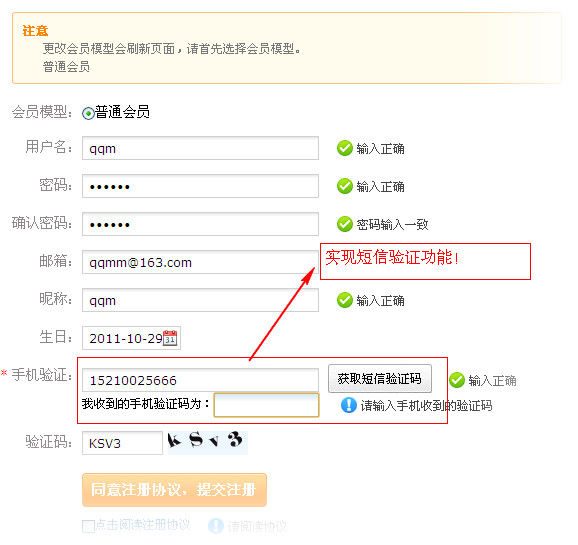 V9官网在新版本的系统中,内置短信验证字段,只需要简单添加字段,即可实现会员注册时短信验证码的使用!