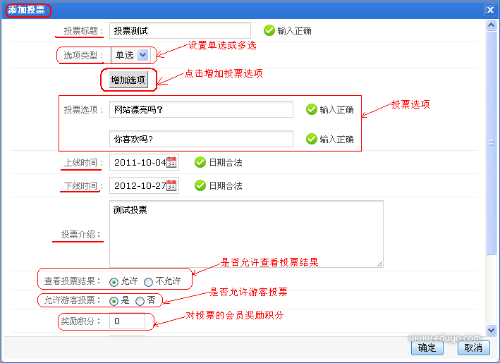 奖励积分:如果投票用户为会员,则奖励积分2.管理投票