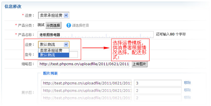 1.模块配置 2.运费模版设置 企业黄页会员,在商务中心可建立多个物流模版!并为每个物流模版定义不同的收费标准,供添加产品时重复、高效使用! 3.发布产品使用物流功能 3.页面显示效果