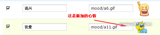 b. 心情配置添加新复制的图片心情,提交。如下图