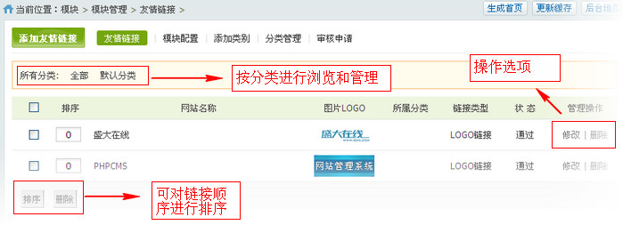 可管理友情链接分类、添加、修改友情链接,审核交换链接的申请!