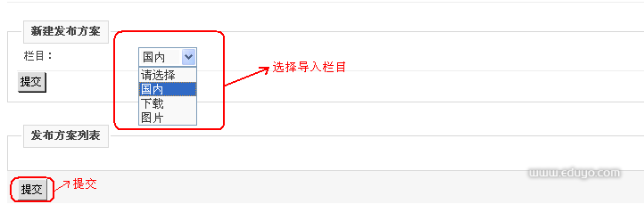 点击“导入”,跳转到选择栏目页面。如下图所示: