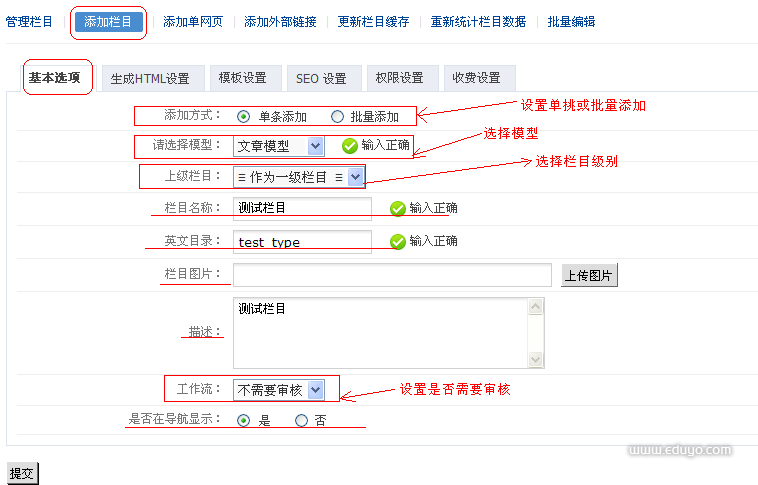 1.添加栏目