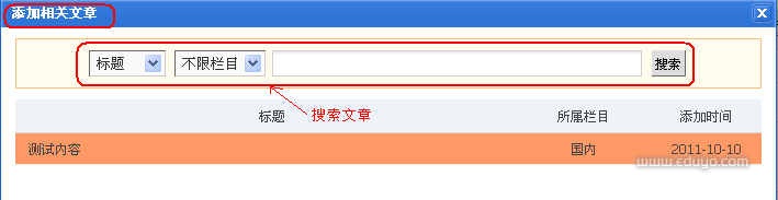你可以选择不同栏目的内容进行关联。如下图我已经添加一条相关的内容"测试内容"