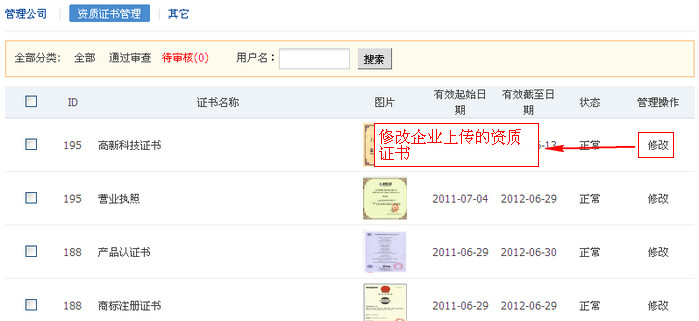 可对企业上传的资质证书进行统一查看管理。