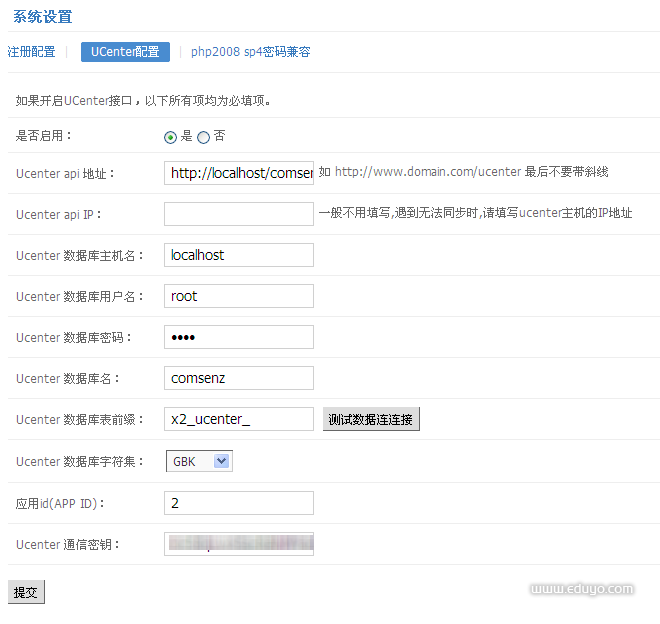 2.登录phpsso后台,系统设置 > uc设置