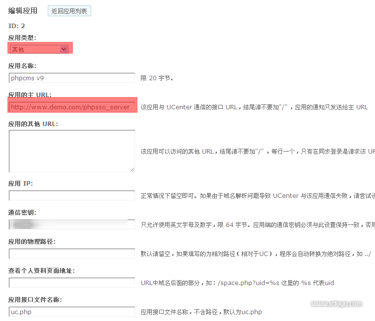 3.登录Ucenter后台,添加应用,配置相应的信息