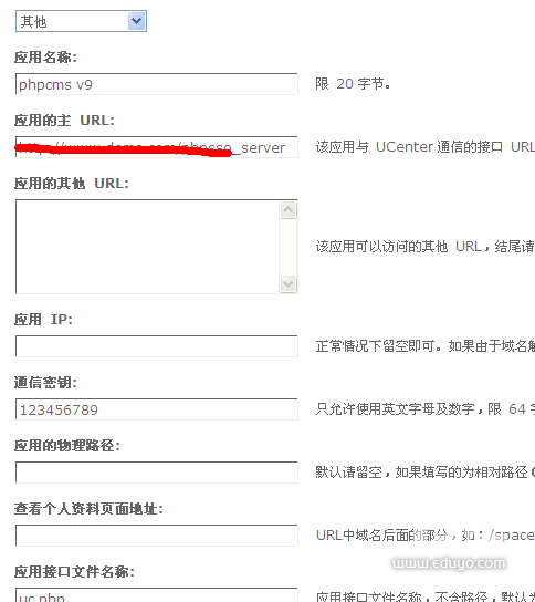 3.登录Ucenter后台,添加应用,配置相应的信息
