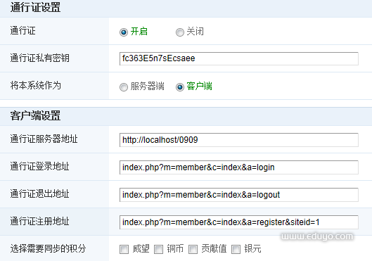 10.进入应用 - 插件中心 » 通行证 ,网址为:http://localhost/phpwind8.7/admin.php?adminjob=hack&hackset=passport